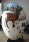 Emu eggs are approximately 5-7" tall and have a circumference of approximately 8-9". On average they contain 12 times as much as a chicken egg. They are very rich in Omega-3 and other essential fatty acids making them extremely healthy for you to eat. They are also lighter in taste then chicken eggs making them more appealing to gourmet chefs and people who don't normally enjoy chicken eggs. All the eggs available here are all emptied and cleaned. Prices